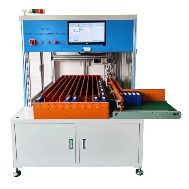 BT-FX11方型鋁殼電芯自動分選機方型鋁殼電芯自動掃碼,自動測試,自動分選內阻、電壓的自動化設備,自帶高精密內阻、電壓自動測試系統(tǒng),該設備根據(jù)在軟件上設定的內阻、電壓值精確的將電池送入到指定檔位,系統(tǒng)最多可實現(xiàn)10級分選。此設備每小時可測試配組電芯約600支左右,且結構設計簡潔大方,性能穩(wěn)定,設備操作簡單,性價比高的分選設備。
